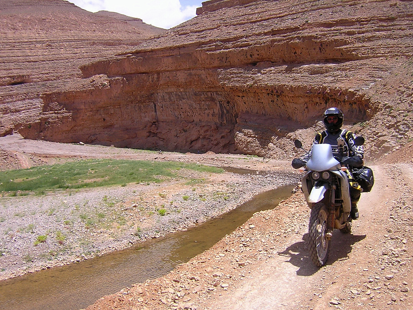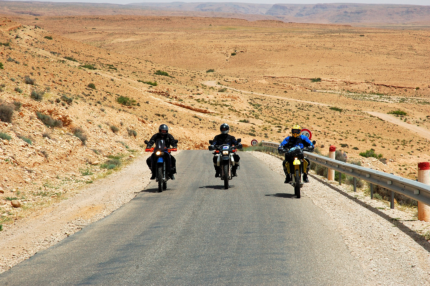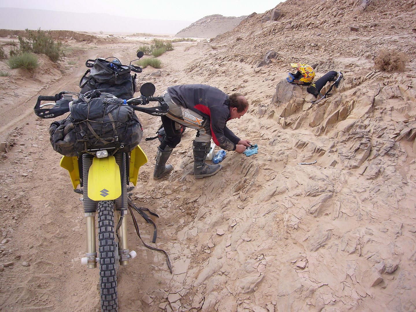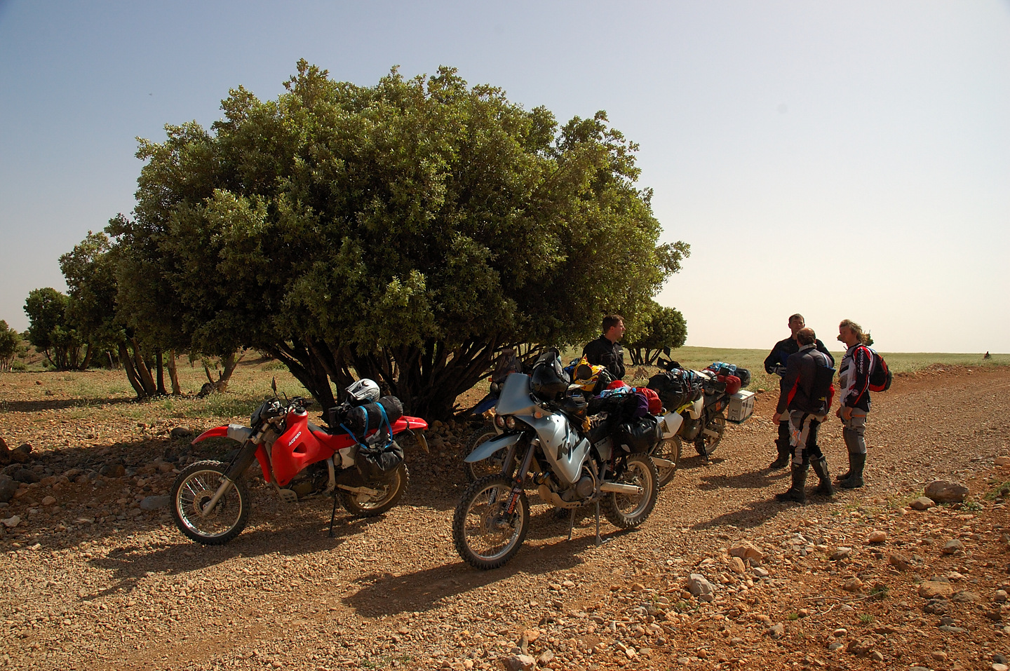 Gott sei Dank hat auch in diesem Jahr alles prima geklappt, das Material hat durchgehalten und keiner wurde verletzt. Leider konnten wir die Strecken im Süden nicht wie geplant fahren, die stärksten Regenfälle seit 16 Jahren machten uns einen Strich durch die Rechnung. Der ganze Süden Marokkos wurde durch die heftigen Unwetter in Mitleidenschaft gezogen. Hotels wurden in Merzouga weggespült, es gab mehrere Tote zu beklagen. Wir selbst hatten Glück im Unglück. Das Unwetter überraschte uns mitten in der Wüste, jedoch stand zufällig ein „Hotel“ am Wegesrand in dem wir für den restlichen Tag Schutz fanden. Entschädigt wurden wir durch ein tolles Schauspiel von Wasser in der Wüste und aufregende Strecken in Folge dessen.