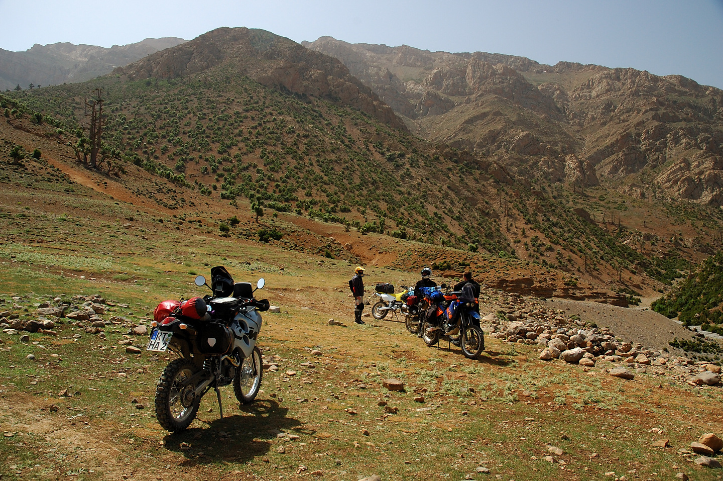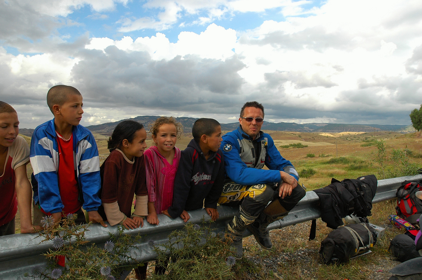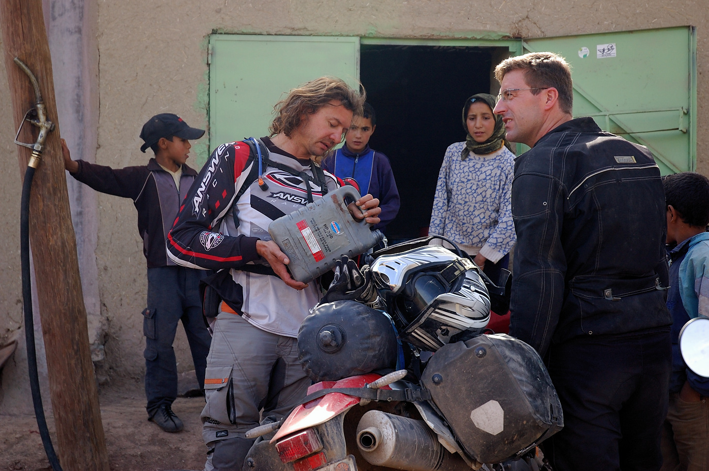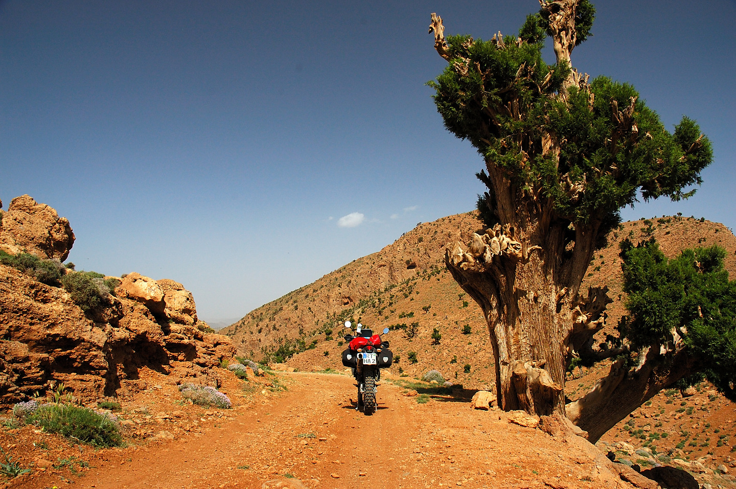 Gott sei Dank hat auch in diesem Jahr alles prima geklappt, das Material hat durchgehalten und keiner wurde verletzt. Leider konnten wir die Strecken im Süden nicht wie geplant fahren, die stärksten Regenfälle seit 16 Jahren machten uns einen Strich durch die Rechnung. Der ganze Süden Marokkos wurde durch die heftigen Unwetter in Mitleidenschaft gezogen. Hotels wurden in Merzouga weggespült, es gab mehrere Tote zu beklagen. Wir selbst hatten Glück im Unglück. Das Unwetter überraschte uns mitten in der Wüste, jedoch stand zufällig ein „Hotel“ am Wegesrand in dem wir für den restlichen Tag Schutz fanden. Entschädigt wurden wir durch ein tolles Schauspiel von Wasser in der Wüste und aufregende Strecken in Folge dessen.