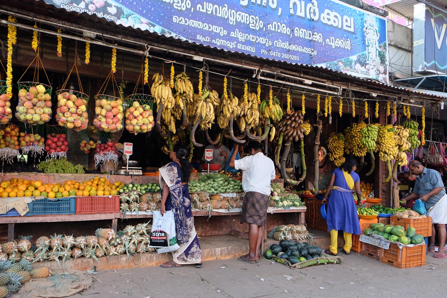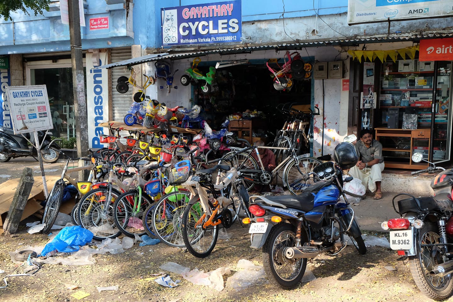 | 11 | Kollam – Varkala (ca. 90 km)Nahe bei Kollam liegt „munroe-Island“, einer der Ausgangspunkte für die Bootstour durch die berühmten Backwaters von Kerala, ein palmenumsäumtes, teils natürlich, teils künstlich angelegtes Kanalsystem. Ein paar Stunden fuhren wir auf einem kleinen Boot durch die Backwaters. Gegen Mittag setzten wir zur letzten Motorradfahrt dieser Reise an um am Spätnachmittag wir wieder in Varkala zu sein. |