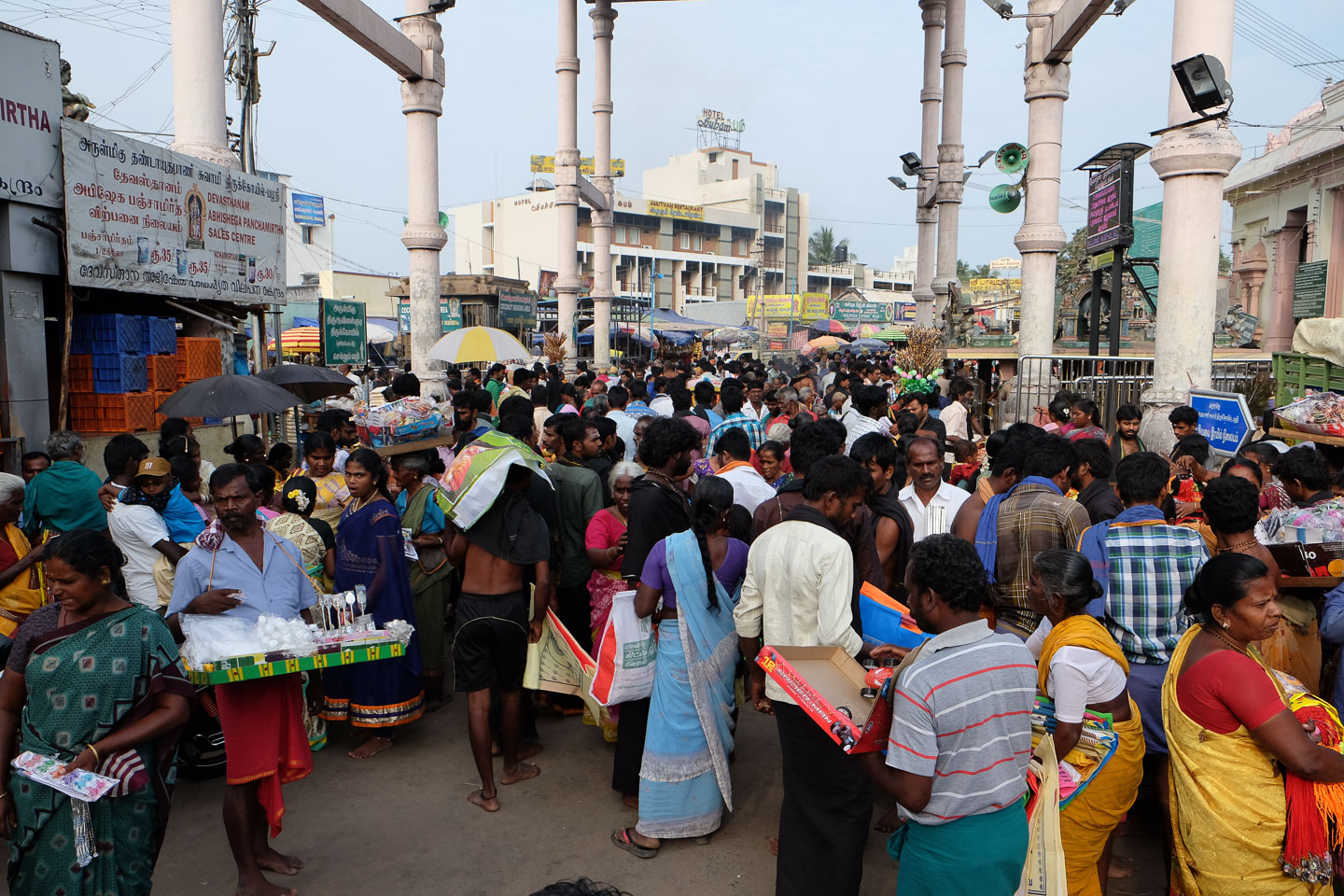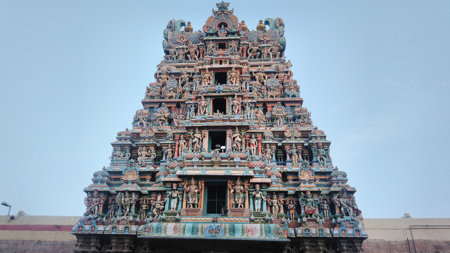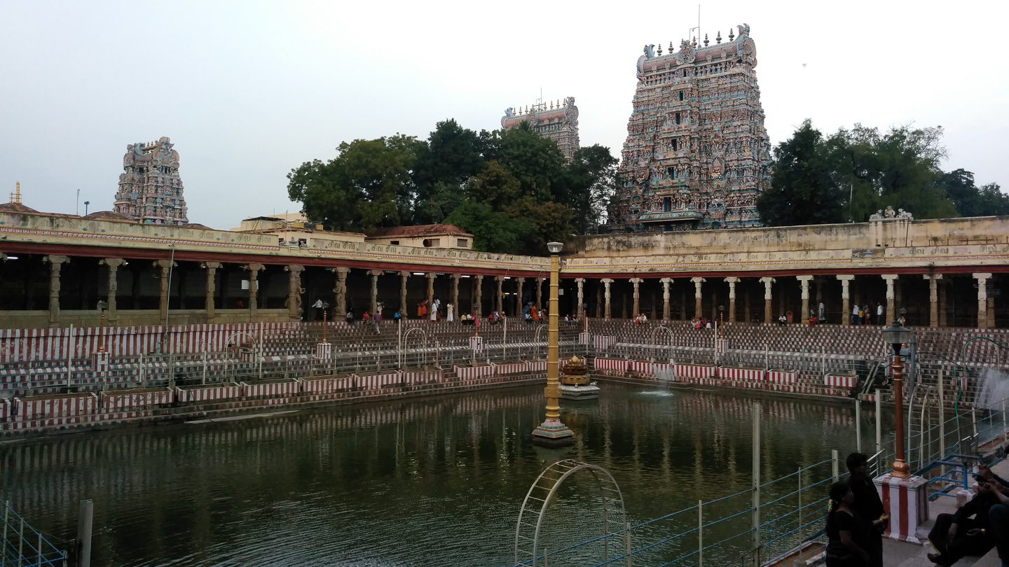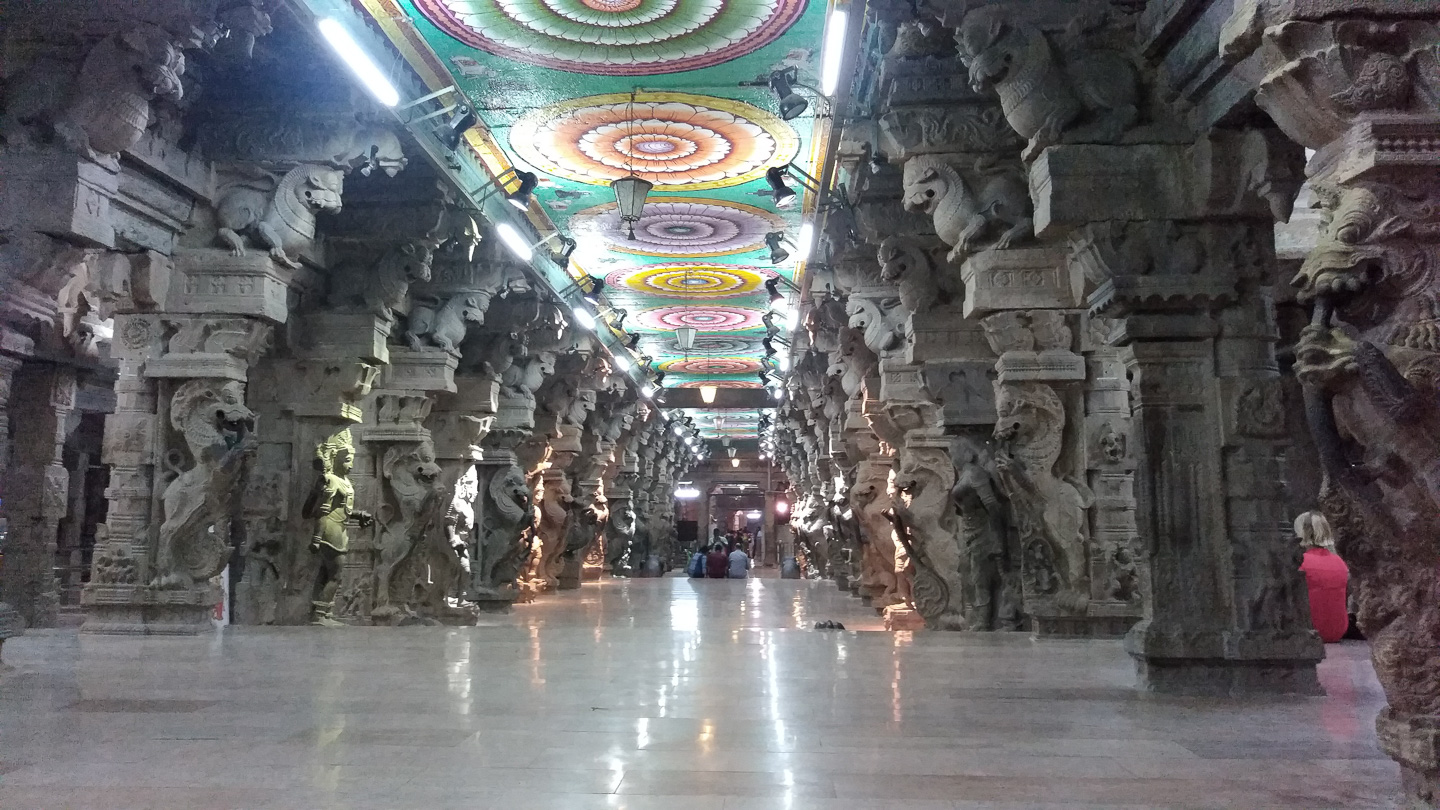 | 2 | Kanyakumari – Madurai (ca. 245 km)Fahrt nach Madurai: Kurz hinter Kanyakumari durchquerten wir Kilometer lang eine gigantische Windkraftanlage. Nach etwa sechs Stunden erreichten wir Madurai und besuchten Abends wir den Menakshee Tempel, eine der größten Tempelanlagen Indiens. |