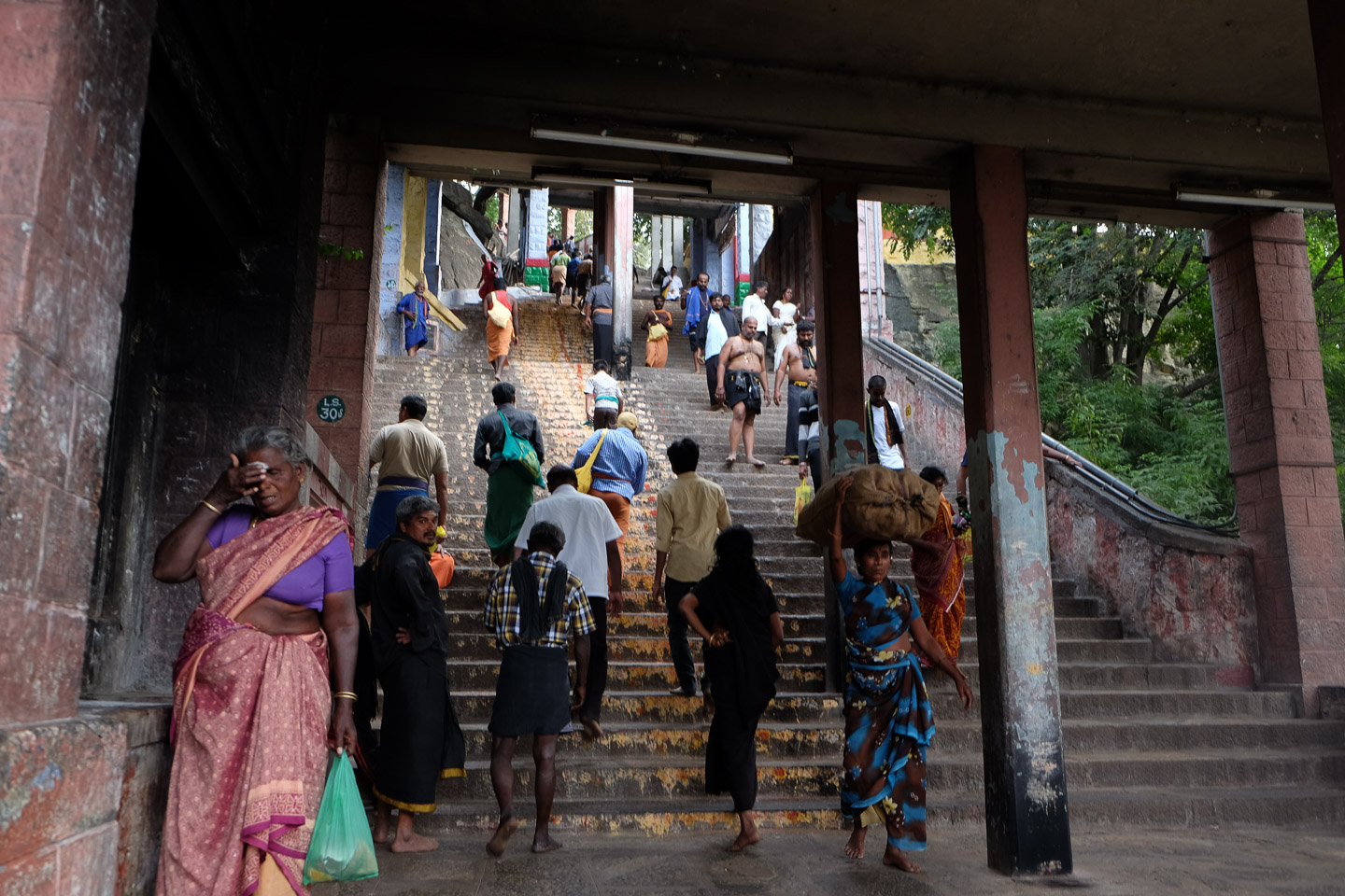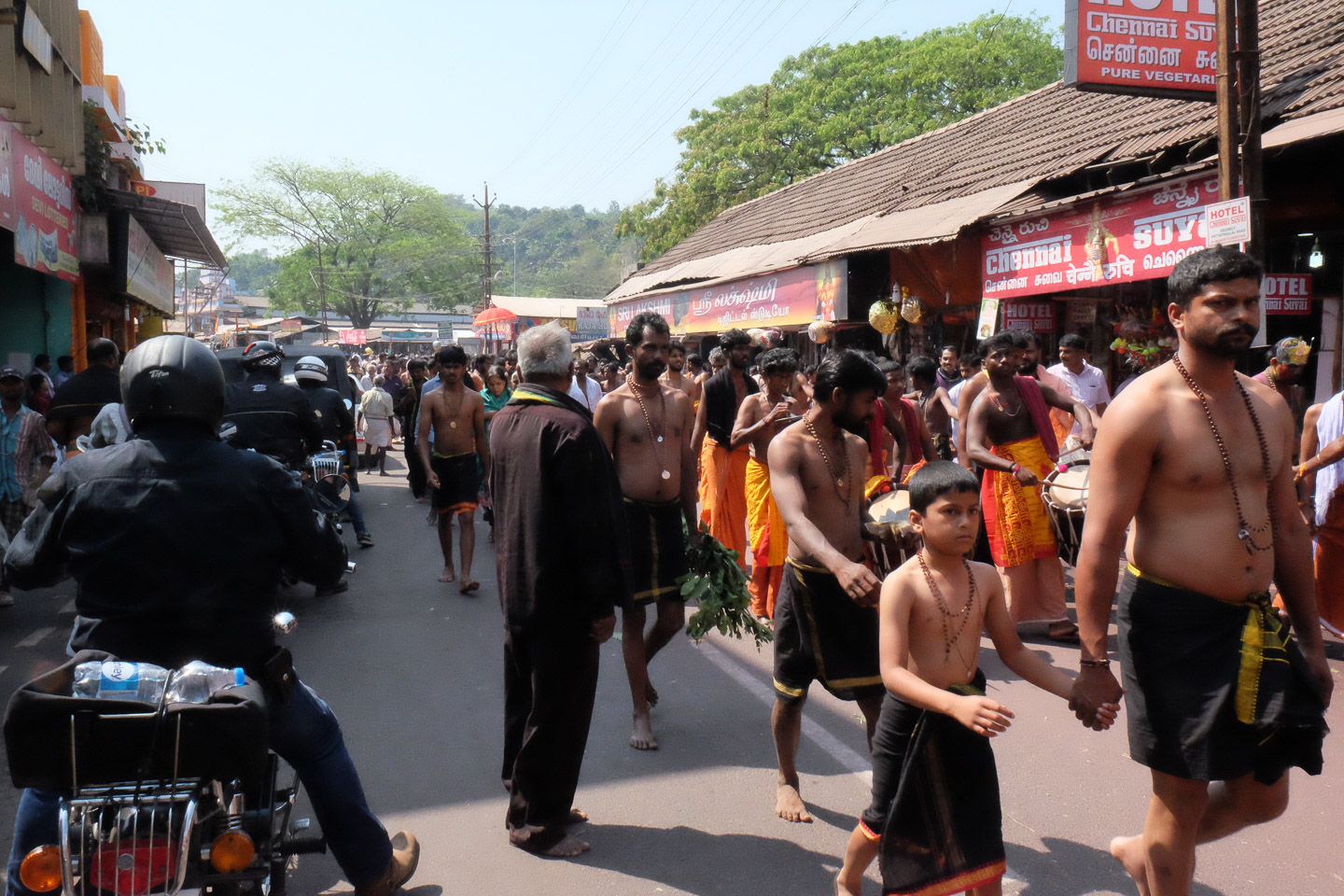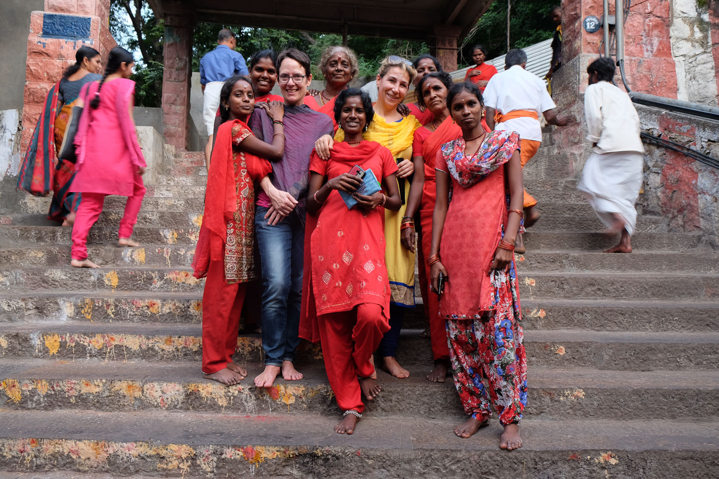 | 6 | Madurai – Palani (ca. 165 km)Heute kamen die Kurvenfahrer auf ihre Kosten. Wir fuhren hoch in die Berge der Western Ghatts und erreichten bis zu 2.200 Meter über dem Meeresspiegel. Ausreichend Kurven auf gut ausgebauten Straßen machten diesen Tag zu einem Genuss. Doch zum Abend hin ging es zurück ins Tal in die Tempelstadt Palani. Der Besuch des Tempels ein unglaubliches Erlebnis. |