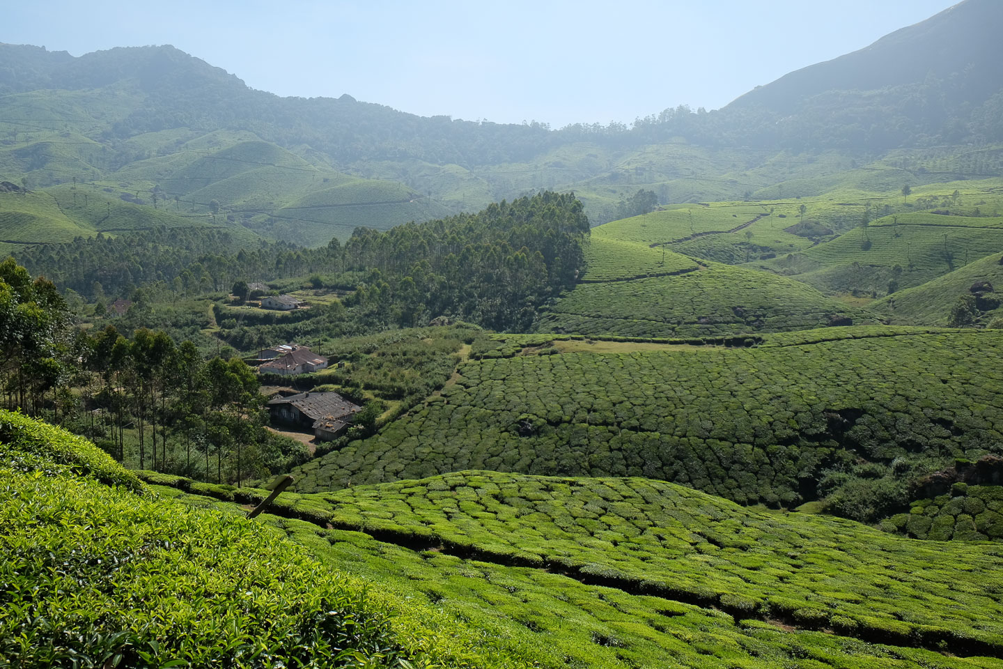 | 7 | Palani – Munnar (ca. 135 km)Auf unserer heutigen Strecke lagen wiederum einige Bergpassagen, also wieder ein Paradies für Kurvenfahrer. Wir durchfuhren zwei Wildlife Sanctuaries, den Indira-Ghandi- und den Chinnar-Naturschutzpark. Ab nachmittags befinden wir uns im Land des Tees. So weit das Auge reichte, waren die Hügel und Täler mit der würzig duftenden, energiespendenden Pflanze bewachsen. |
