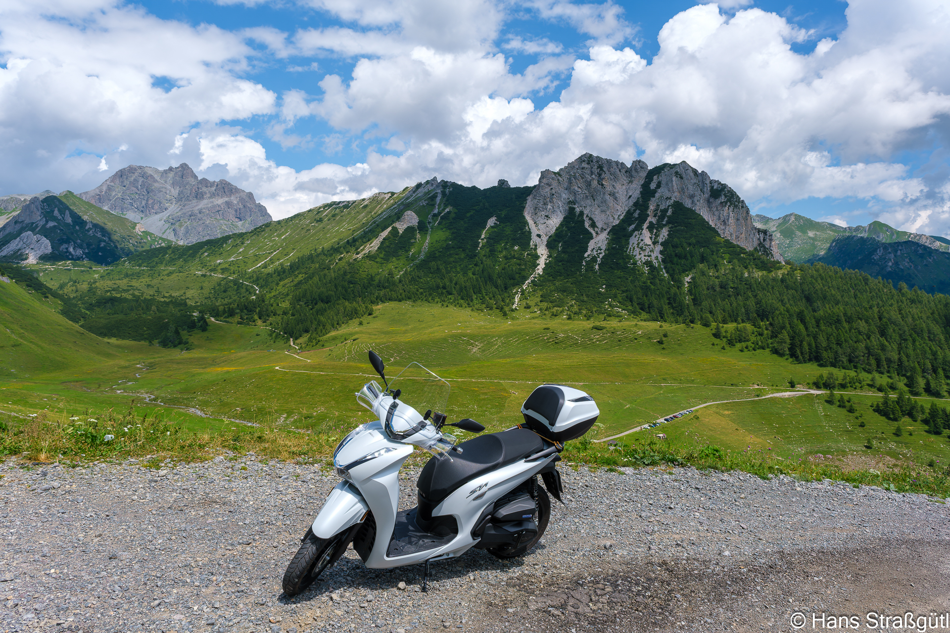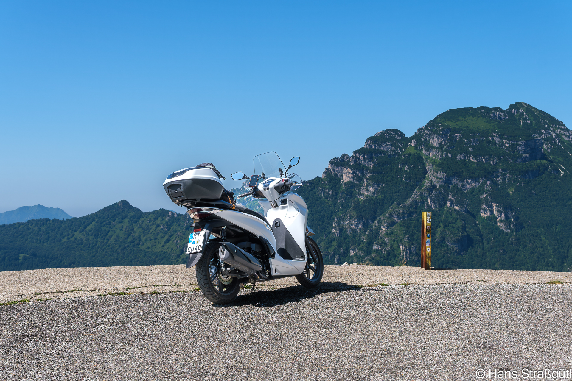 Die Roller sind je ein SH 150 und ein SH 350 von Honda. Tolle Fahrzeuge, zuverlässig, flott und zumindest der 350er hat ein sehr vernünftiges Fahrwerk.